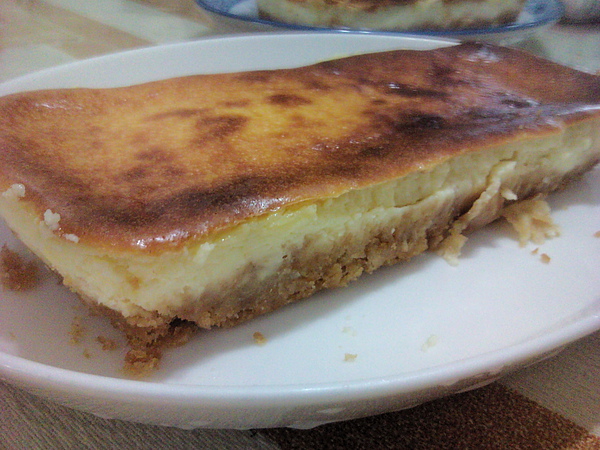 材料:cream cheese奶油乳酪300g、蛋兩顆、牛奶100cc、砂糖75g、消化餅乾120g、奶油40g